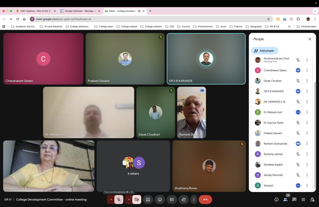 Online meeting of the College Development Committee (CDC) as per Maharashtra Public University Act, 2016 (Chapter VII-97) for the Academic Year 2025-26 was held on Monday 06 October 2025 at 09:00 am.
