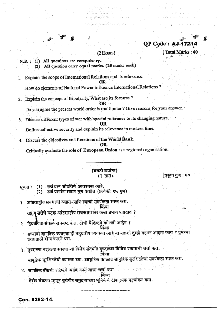 Semester 5 Paper 4 Marks 100 Nov, 7 2023 IR